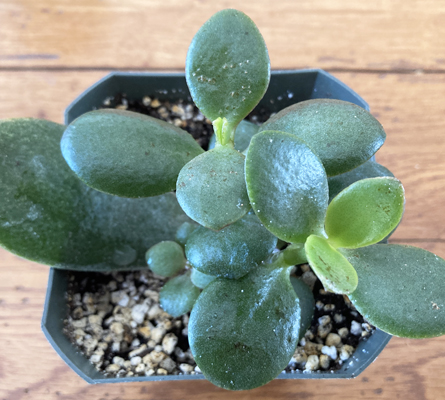 The classic Jade Plant, native to South Africa and Mozambique. Great houseplant which requires little care.