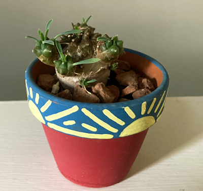 A hybrid euphorbia which resembles a pinecone with leaves. Slow growing, forms clumps.